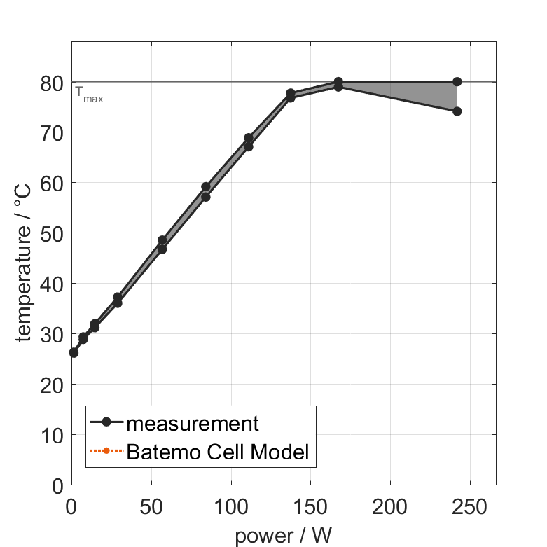 The Batemo Cell Model of the lithium-ion battery cell BAK Battery INR2170-40D is a high-precision, physical cell model with global validity. As a digital twin it seamlessly integrates into your research, development and battery analytics by basing your decisions on simulations. See the details to learn more about the features and capabilities of the Batemo Cell Model. Batemo demonstrates the accuracy and validity of the Batemo Cell Model by comparing battery simulation and measurement data in the range given below. Validation is extensive, experimental characterization covers the total operational area of the cell: At low and high temperatures, up to the maximal current and in the whole state of charge range.