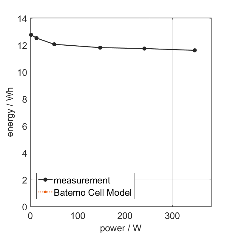 Batemo measured the C/10 energy by discharging the cell at an ambient temperature of 25°C from 100% with a constant current of 0.34A (0.1C) until reaching the voltage of 2.5V. The thermal boundary condition is free convection. |